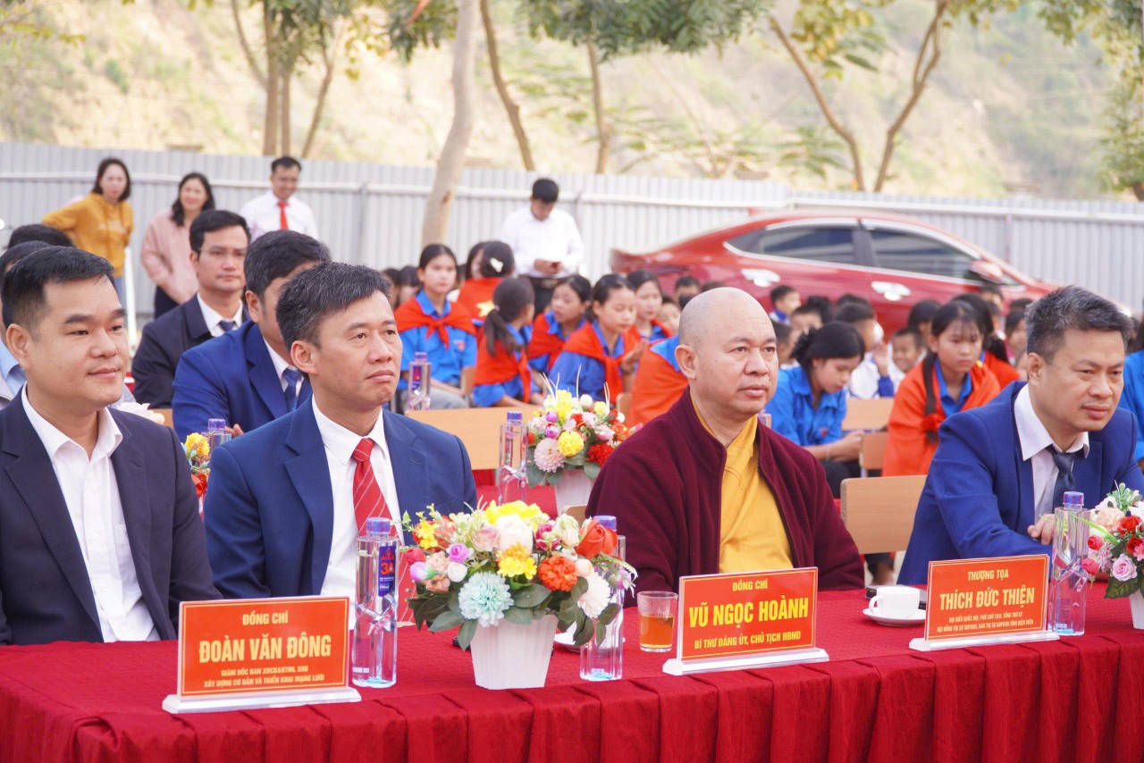 Phát biểu tại buổi lễ, Thượng tọa Thích Đức Thiện nhấn mạnh công trình là kết tinh của trách nhiệm xã hội, tinh thần nhân ái và sự chung tay vì sự nghiệp giáo dục nơi vùng sâu, vùng xa. Sự đồng hành của SHB thể hiện rõ vai trò doanh nghiệp vì cộng đồng, góp phần “nâng bước em tới trường”, tạo nền tảng cho tương lai thế hệ trẻ.