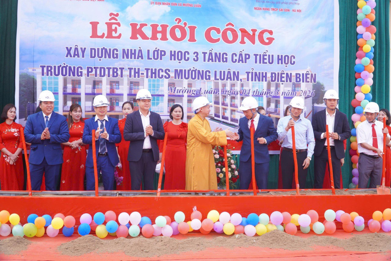 Sáng ngày 04/3/2026, Giáo hội Phật giáo Việt Nam, UBND xã Mường Luân và Ngân hàng TMCP Sài Gòn – Hà Nội (SHB) phối hợp khởi công xây dựng nhà lớp học 3 tầng cho Trường PTDTBT Tiểu học và THCS Mường Luân, xã Mường Luân, tỉnh Điện Biên.