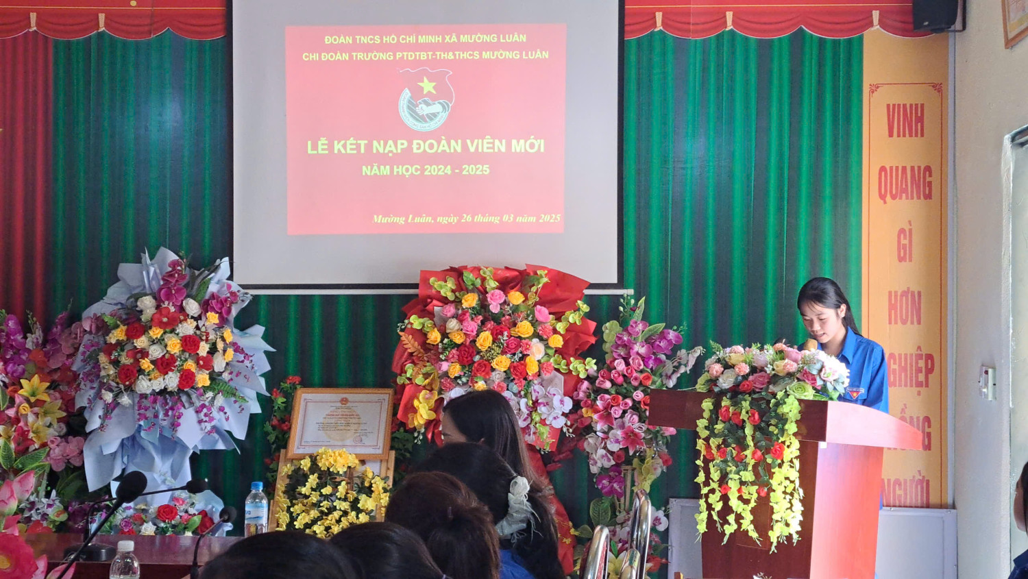 Về dự Lễ kết nạp và trao quyết định chuẩn y kết nạp, gắn huy hiệu Đoàn cho các đoàn viên mới, về phía Xã đoàn Mường Luân có đồng chí Lò Văn Thắng – Bí thư đoàn xã, đồng chí Khoàng Thị Nghiêm phó bí thư Đoàn xã.