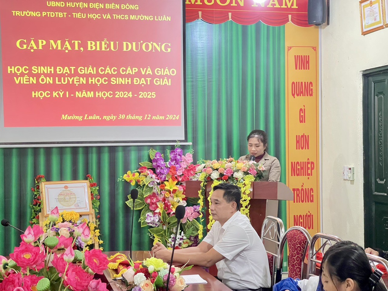Ngày 30/12/2024, trường PTDTBT TH&THCS Mường Luân long trọng tổ chức Lễ tuyên dương khen thưởng học sinh giỏi tiêu biểu học kỳ I năm học 2024- 2025. Đây là dịp để ghi nhận và biểu dương học sinh giỏi tiêu biểu, các thầy, cô giáo có thành tích xuất sắc trong công tác bồi dưỡng học sinh giỏi của nhà trường.