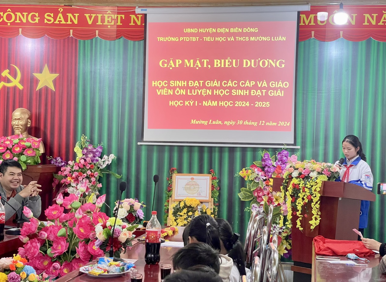Lễ tuyên dương, khen thưởng học sinh giỏi là hoạt động có ý nghĩa rất lớn nhằm vinh danh những tấm gương tiêu biểu là những học sinh đạt giải cao trong các kỳ thi chọn học sinh giỏi. Từ hoạt động có ý nghĩa này, tiếp tục đẩy mạnh phong trào thi đua dạy tốt - học tốt, công tác bồi dưỡng học sinh giỏi ở các nhà trường. Chúc tập thể trường PTDTBT TH&THCS Mường Luân ngày càng phát triển vững mạnh, gặt hái thật nhiều thành công trong công tác giáo dục. Chúc các em học sinh luôn chăm ngoan, học giỏi và sẽ luôn phấn đấu hết mình để gặt hái nhiều thành tích hơn nữa trong các kỳ thi chọn học sinh giỏi các cấp sắp tới.